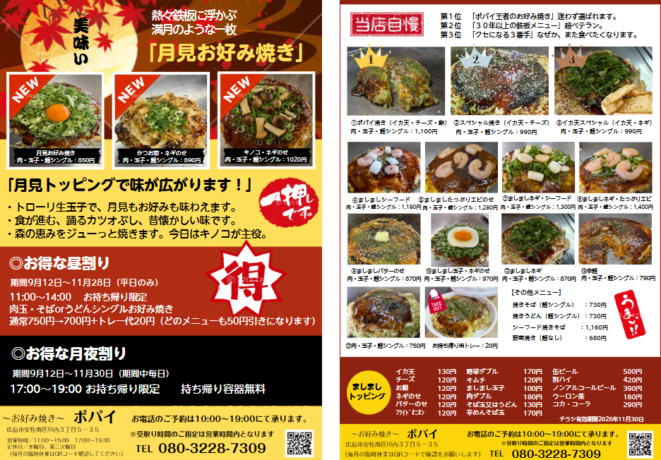 「お好み焼き肉玉そばシングル」通常価格750円→700円(容器代金が別途必要)